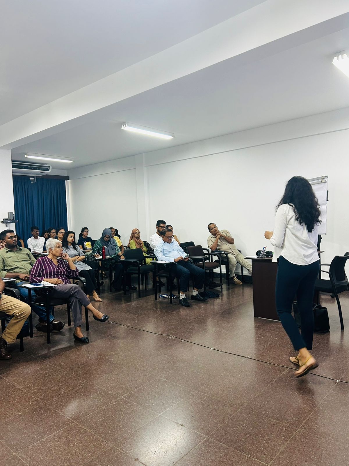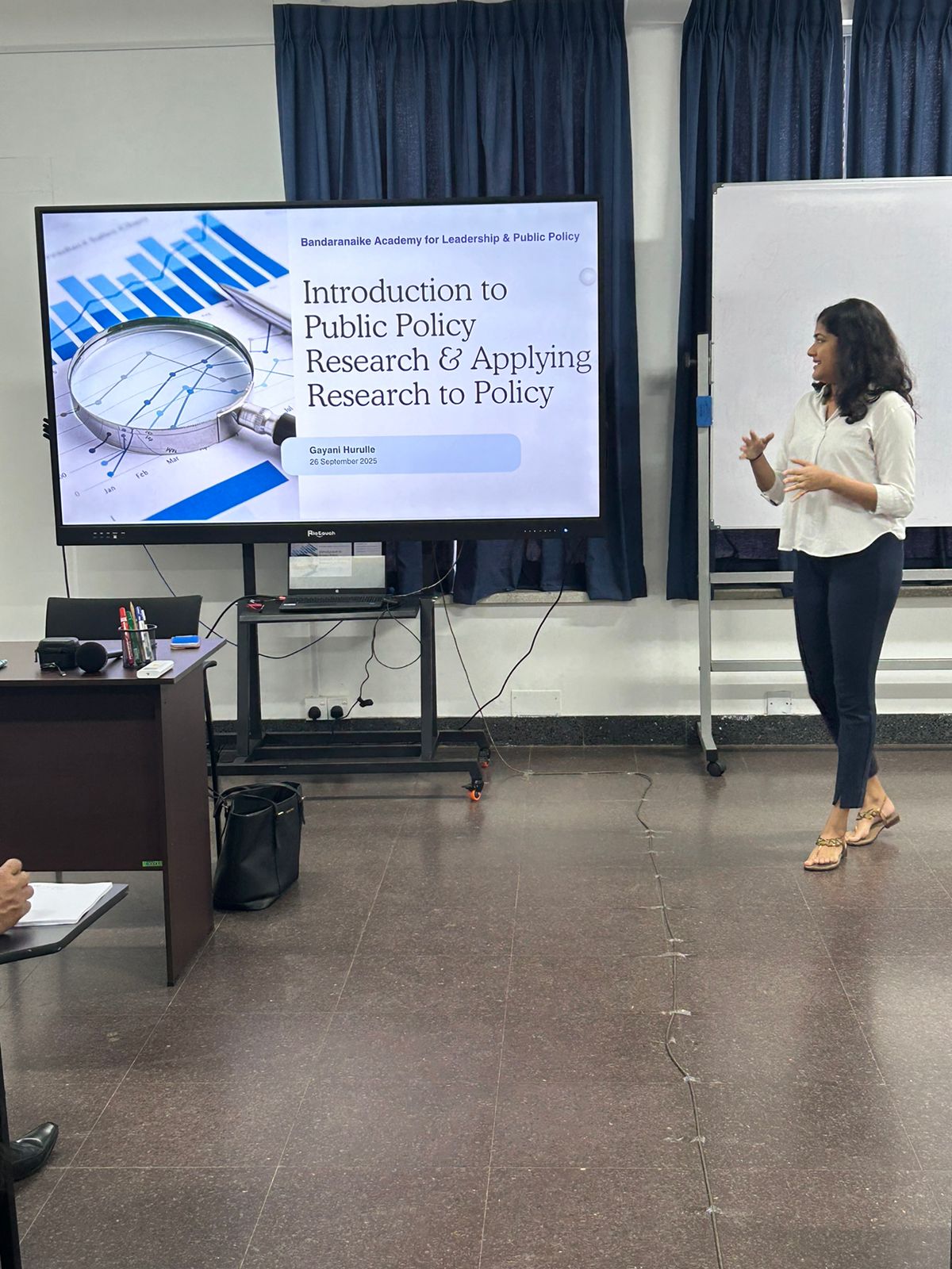 The sessions featured a panel of distinguished resource persons — Mr. Mohamed Faslan, Mr. Shakthi De Silva, and Ms. Gayani Hurulle — who delivered lectures and interactive presentations covering core principles of research design, data interpretation, and the relationship between research and policy outcomes. Their insights offered participants a practical foundation for understanding how empirical evidence can guide decision-making in the public sector.